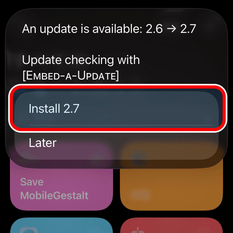 ショートカットのアップデートがある場合は以下のようなポップアップが出る場合があります。その場合は「Install x.x」をタップしてください。