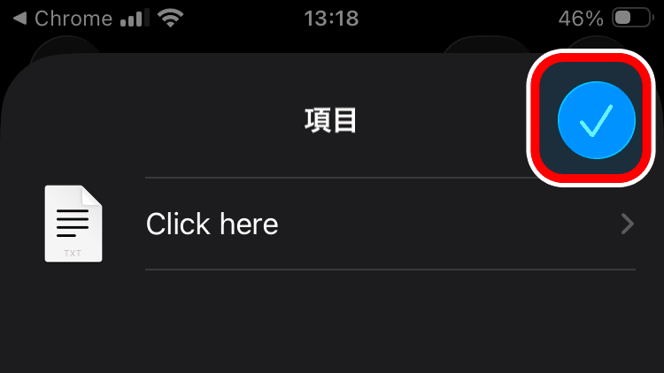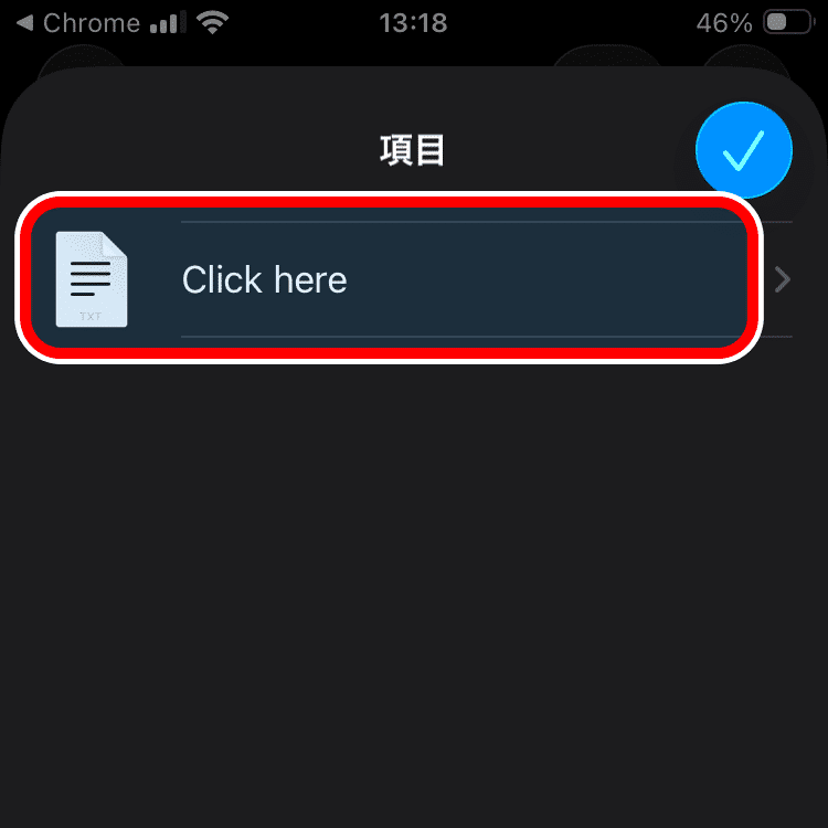 「Click here」という名前の項目をタップします。