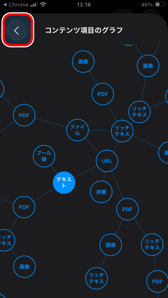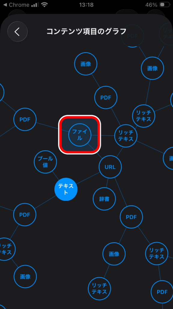 「コンテンツ項目のグラフ」というページが表示されるのでその中から「ファイル」という名前の円を探してタップします。