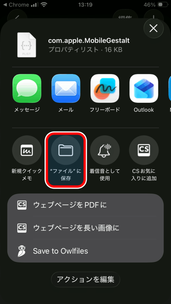 「ファイルに保存」をタップしiPhoneにMobileGestaltファイルを保存します。