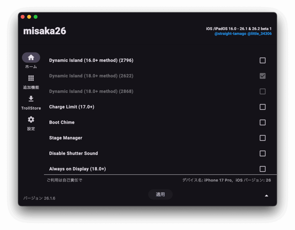✔ misaka26とは?(iOS 26対応の非脱獄カスタマイズツール)