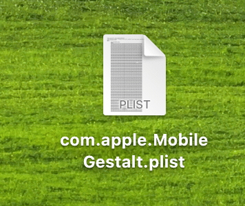ファイル名がデフォルトで「プロパティリスト.plist」になると思いますが、念の為、「MobileGestalt.plist」のような英語ファイル名に変更をしてください。